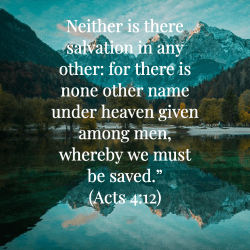 “Neither is there salvation in any other: for there is none other name under heaven given among men, whereby we must be saved.” (Acts 4:12)
