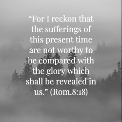 “For I reckon that the sufferings of this present time are not worthy to be compared with the glory which shall be revealed in us.” (Rom.8:18)