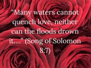 “Many waters cannot quench love, neither can the floods drown it….” (Song of Solomon 8:7)