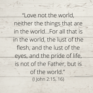 “Love not the world, neither the things that are in the world…For all that is in the world, the lust of the flesh, and the lust of the eyes, and the pride of life, is not of the Father, but is of the world.” (I John 2:15, 16)