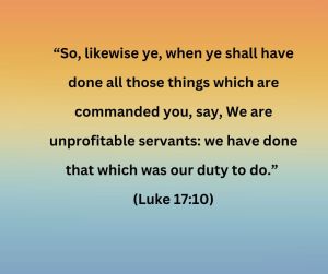 “So, likewise ye, when ye shall have done all those things which are commanded you, say, We are unprofitable servants: we have done that which was our duty to do.” (Luke 17:10)