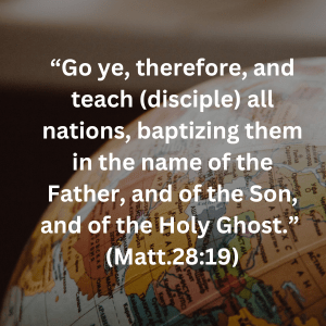 “Go ye, therefore, and teach (disciple) all nations, baptizing them in the name of the Father, and of the Son, and of the Holy Ghost.” (Matt.28:19)