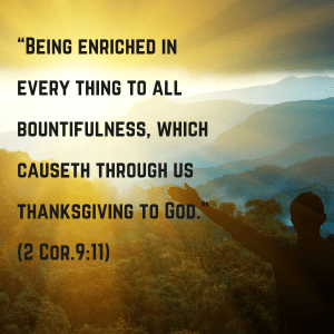 “Being enriched in every thing to all bountifulness, which causeth through us thanksgiving to God.” (2 Cor.9:11)